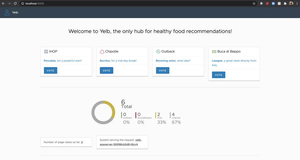 Open your browser on localhost:5000 and vote for your favorite restaurant