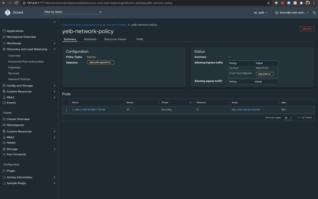 7. Let us apply a NetworkPolicy between yelb-ui and yelb-appserver