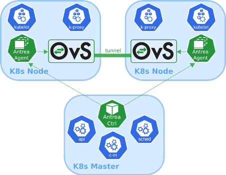 Antrea is a Kubernetes networking solution intended to be Kubernetes native. It operates at Layer3/4 to provide networking and security services for a Kubernetes cluster, leveraging Open vSwitch as the networking data plane.