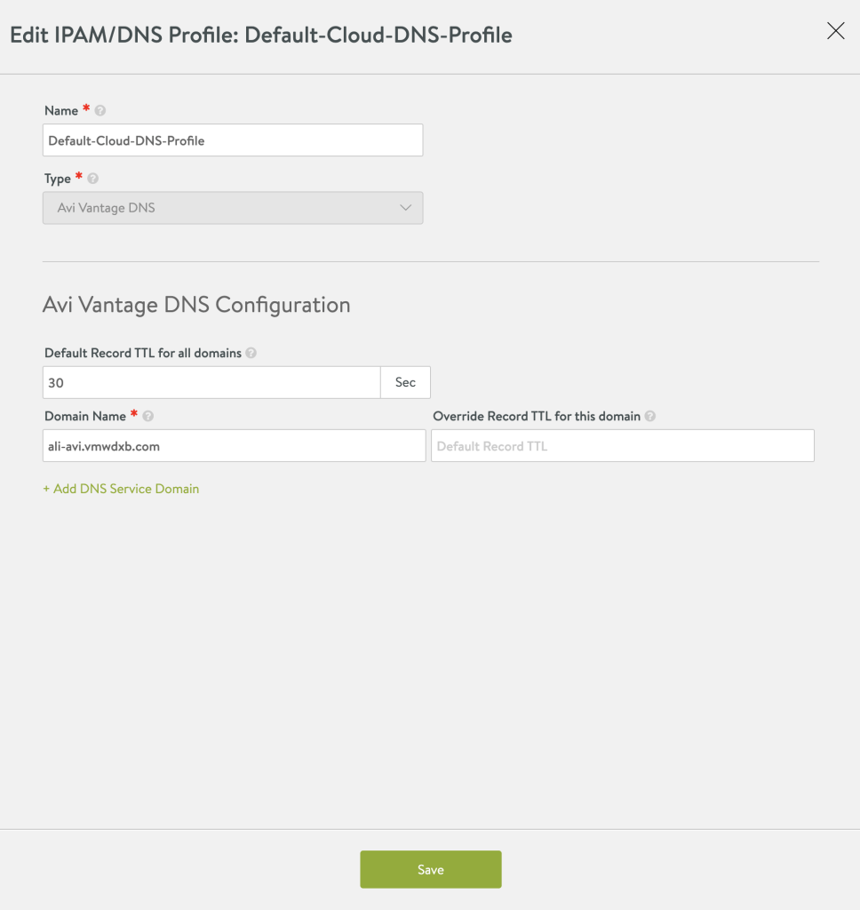 This is going to be the Sub-Domain Name which will be used for our Ingress. There is no need to configure the sub-domain in our DNS Server because we will delegate it to NSX-ALB DNS at a later step.