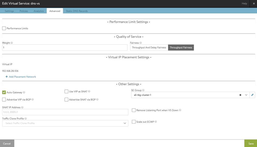 First we need to configure DNS Virtual Service (VS)