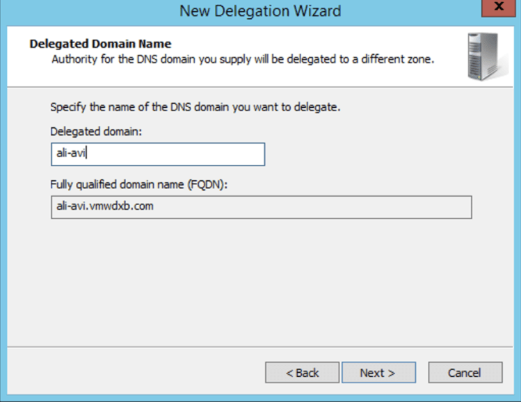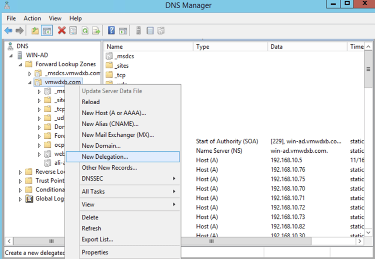 In our main DNS Server, we want to delegate our subdomain to NSX-ALB VS