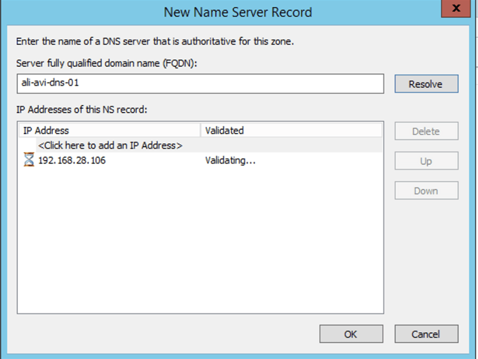 (I already created a DNS entry ali-avi-dns-01 >> 192.168.28.106)