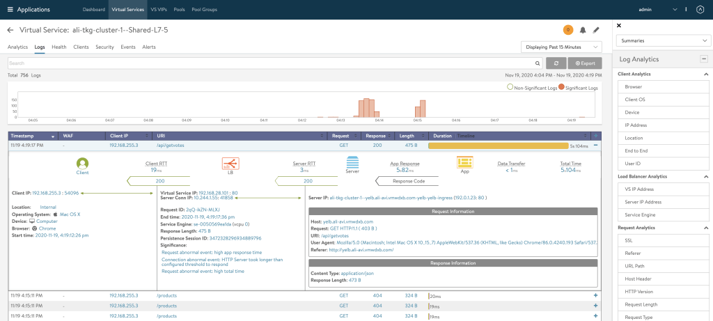 Explore NSX-ALB UI for some nice traffic analytics.
